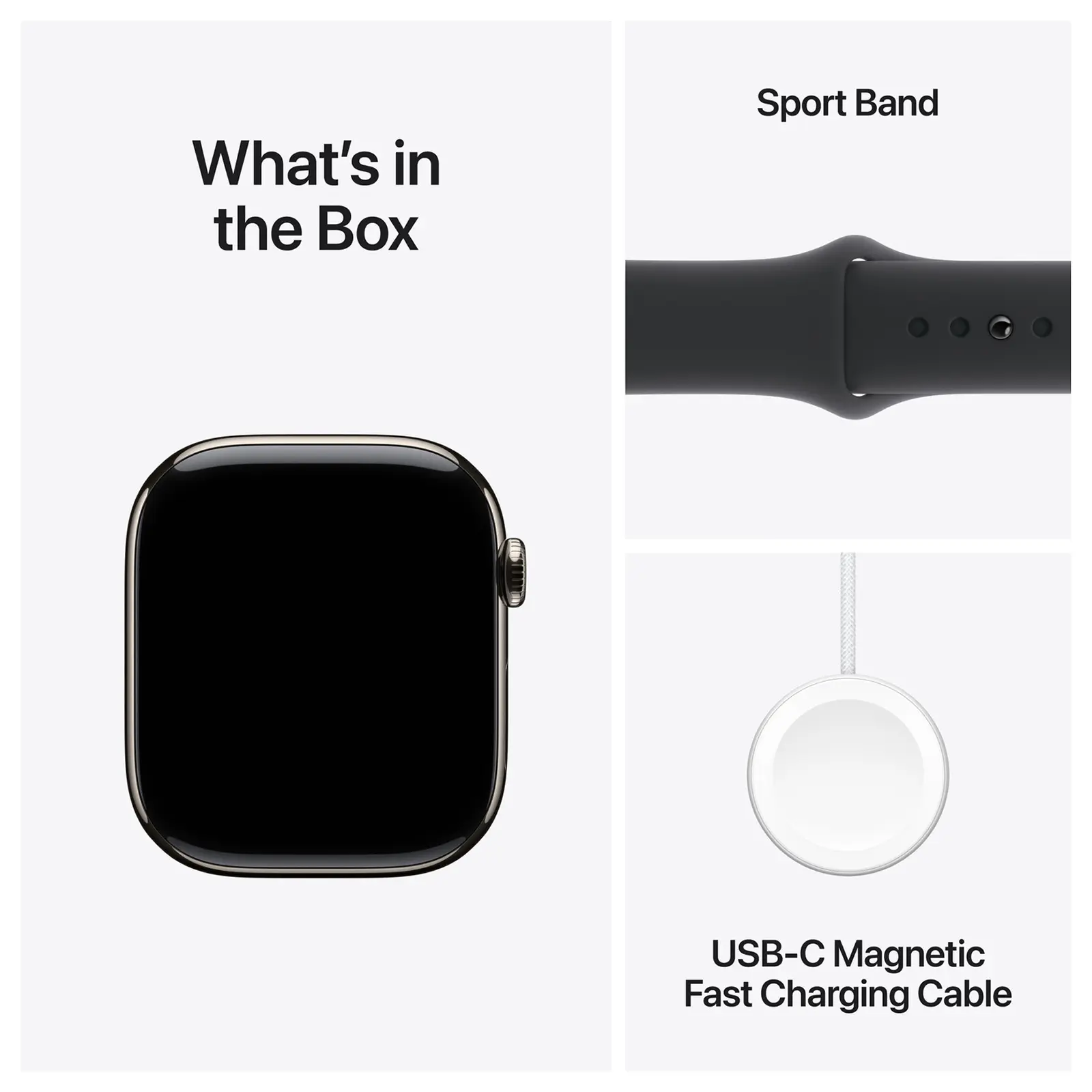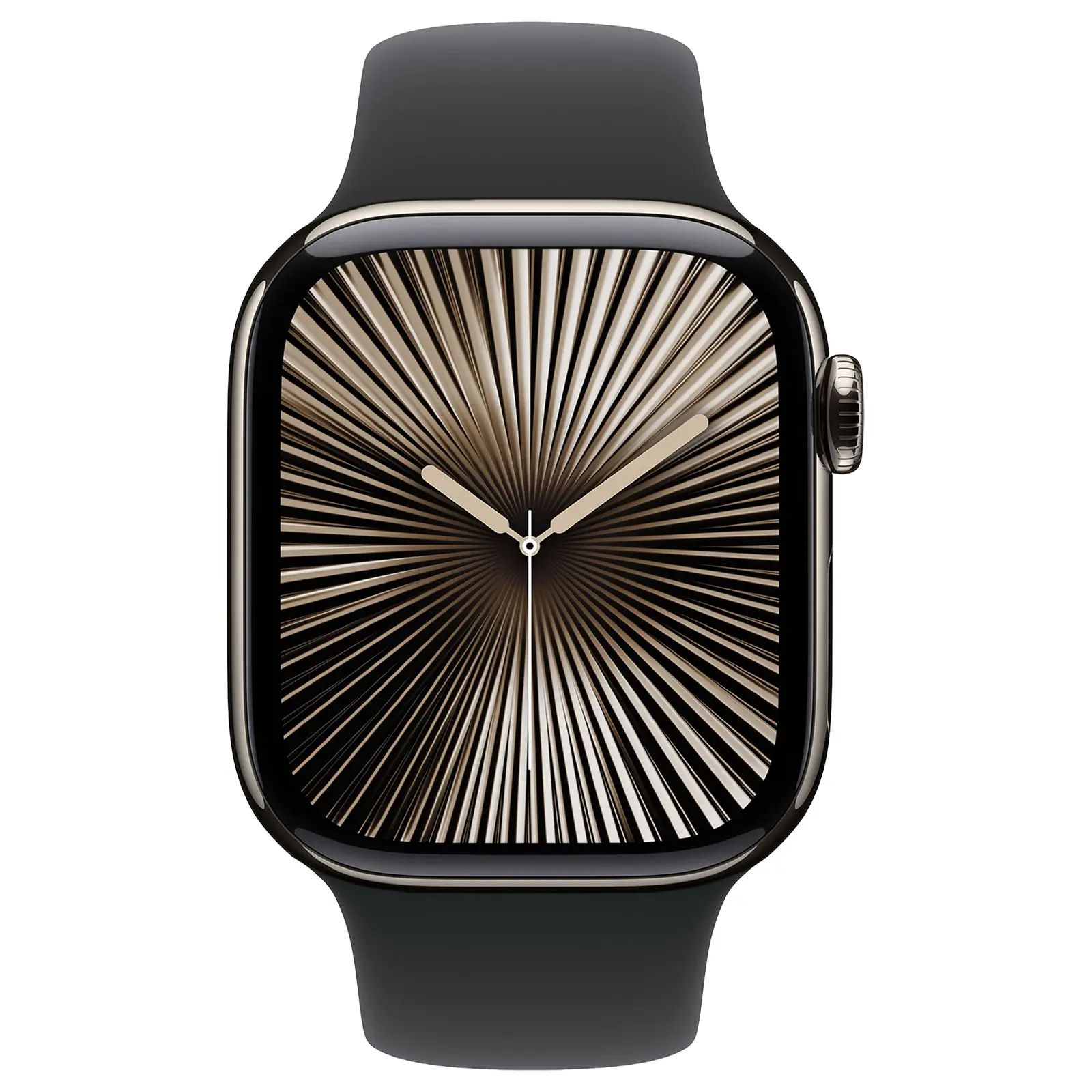 Alles over Apple Watch Series 10 4G 42mm - Naturel Titanium Zwart Sportband