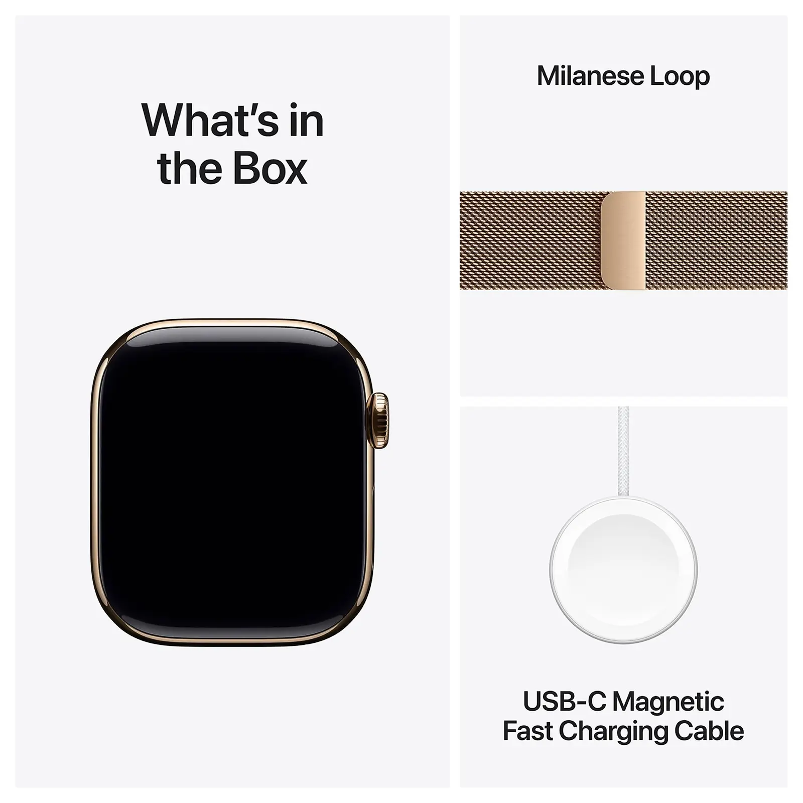 Beschrijving Apple Watch Series 10 4G 46mm – Goud Titanium Goud Milanees band