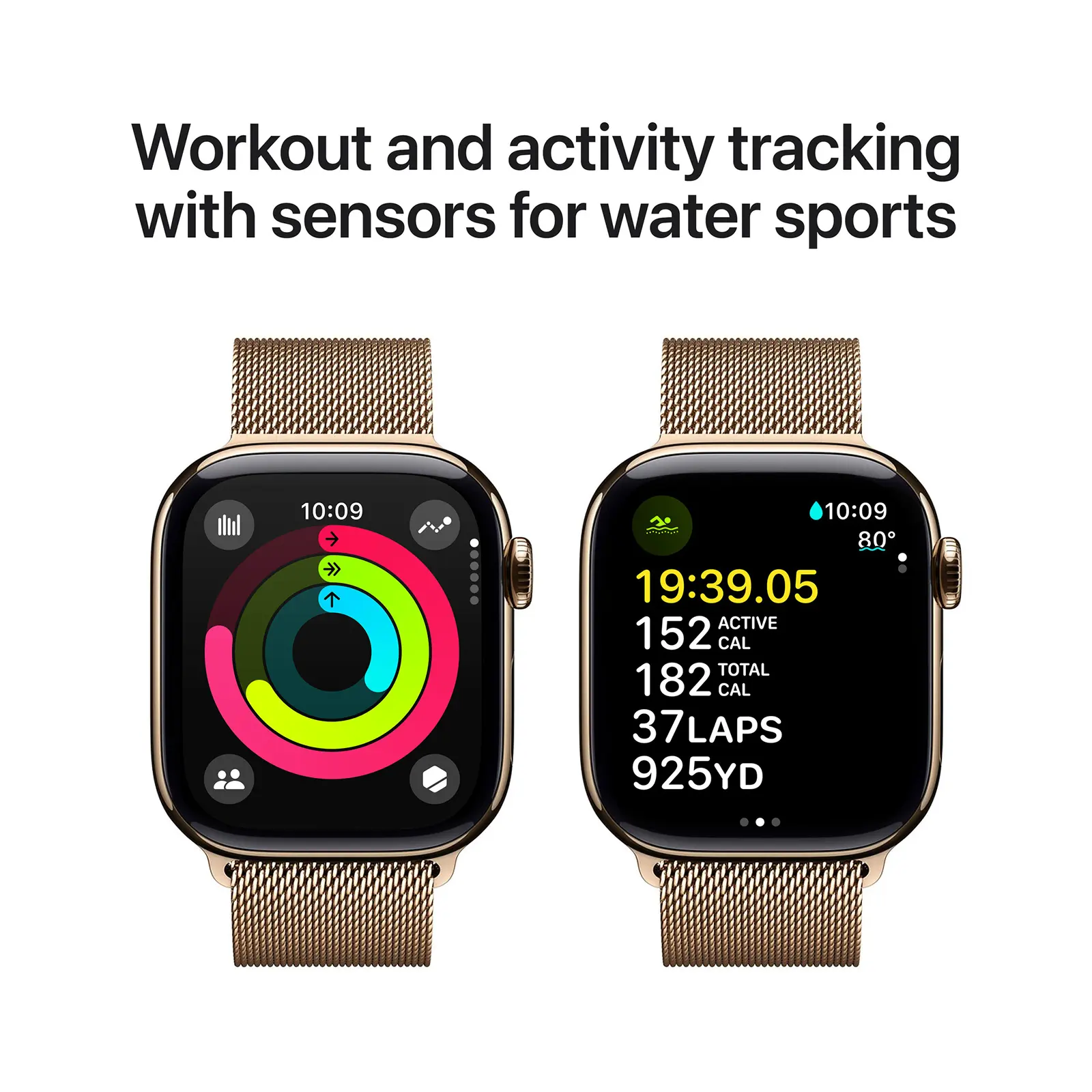 De Apple Watch Series 10 4G 46mm – Goud Titanium Goud Milanees band is ontworpen voor gebruikers die een premium smartwatch zoeken met een luxe uitstraling, een sterke en lichtgewicht afwerking en een heldere weergave. De goud titanium kast geeft een tijdloos design en voelt stevig aan, terwijl de goudkleurige milanese band een elegante pasvorm biedt die prettig draagt gedurende de dag. Met 4G blijf je ook zonder iPhone in de buurt bereikbaar en verbonden, bijvoorbeeld voor bellen, berichten en apps onderweg.