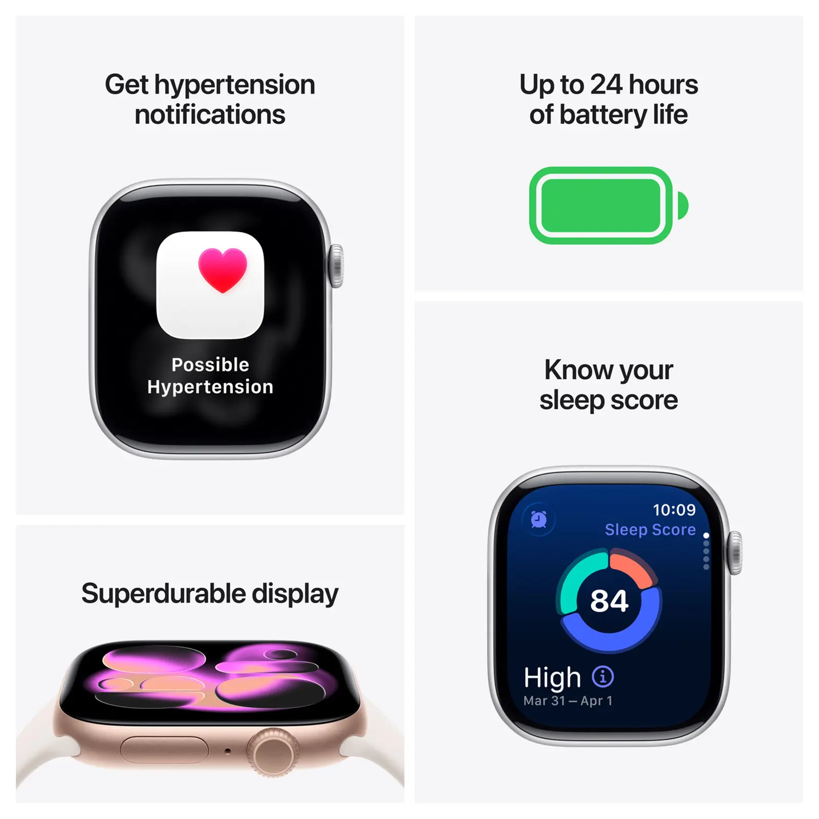 Deze Apple Watch ondersteunt je bij dagelijkse taken en communicatie. Je ontvangt meldingen van apps en berichten, kunt handsfree bellen en snel acties uitvoeren met Siri. Dankzij NFC is Apple Pay beschikbaar voor contactloos betalen waar ondersteund. Ook functies zoals agenda, timers, wekkers en herinneringen maken deze watch een praktische aanvulling op je dagelijkse routine.